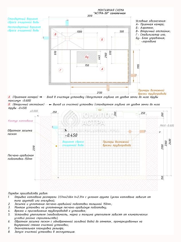 Модель известного производителя Юнилос Астра 50 предназначены для утилизации стоков хозяйственно-бытового назначения, в условиях неукоснительного соблюдения норм и требований СанПин, экологической безопасности. Преимущественная область применения – загородные дома, коттеджи, придорожные мини-гостиницы и т.п. при условии проживания и пользования системой не более чем 50 человек.